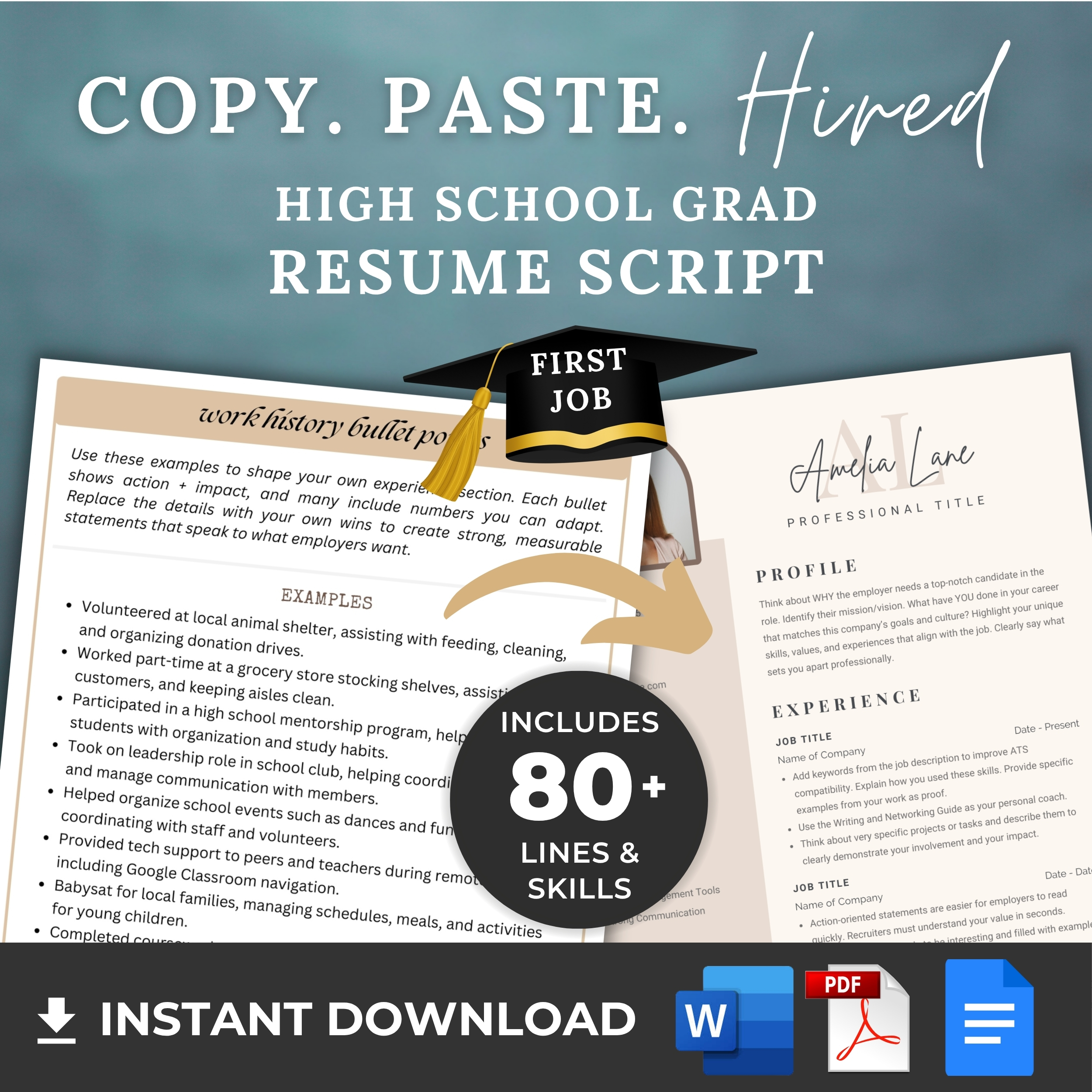 This high school graduate writing template includes resume script content to help you apply to your first job with confidence. Designed for teens, recent grads, and entry-level job seekers, this resume script features easy job description language, beginner resume words, and a copy-paste CV sample download for teen job applications. Get hired with zero experience. These scripts make it simple to build a polished resumeeven if you have no prior job experience. Use professional-sounding language thats already written for you.