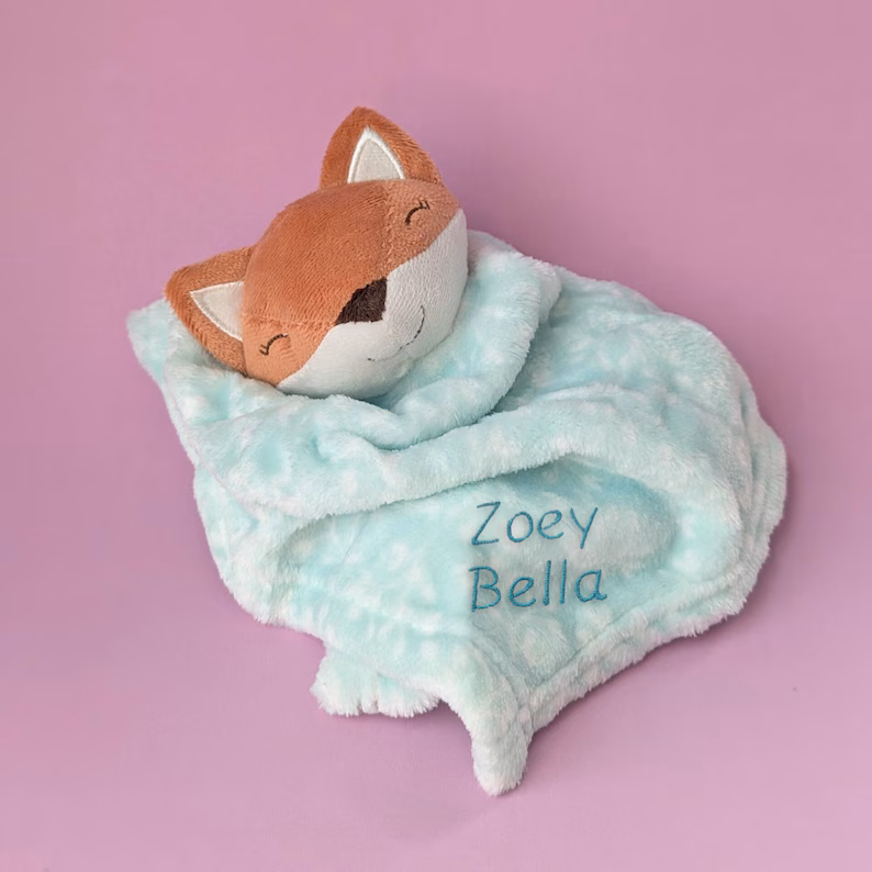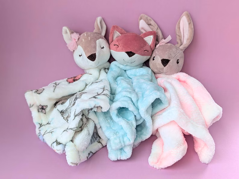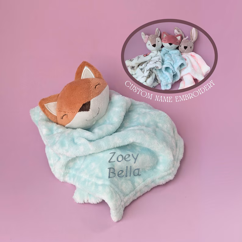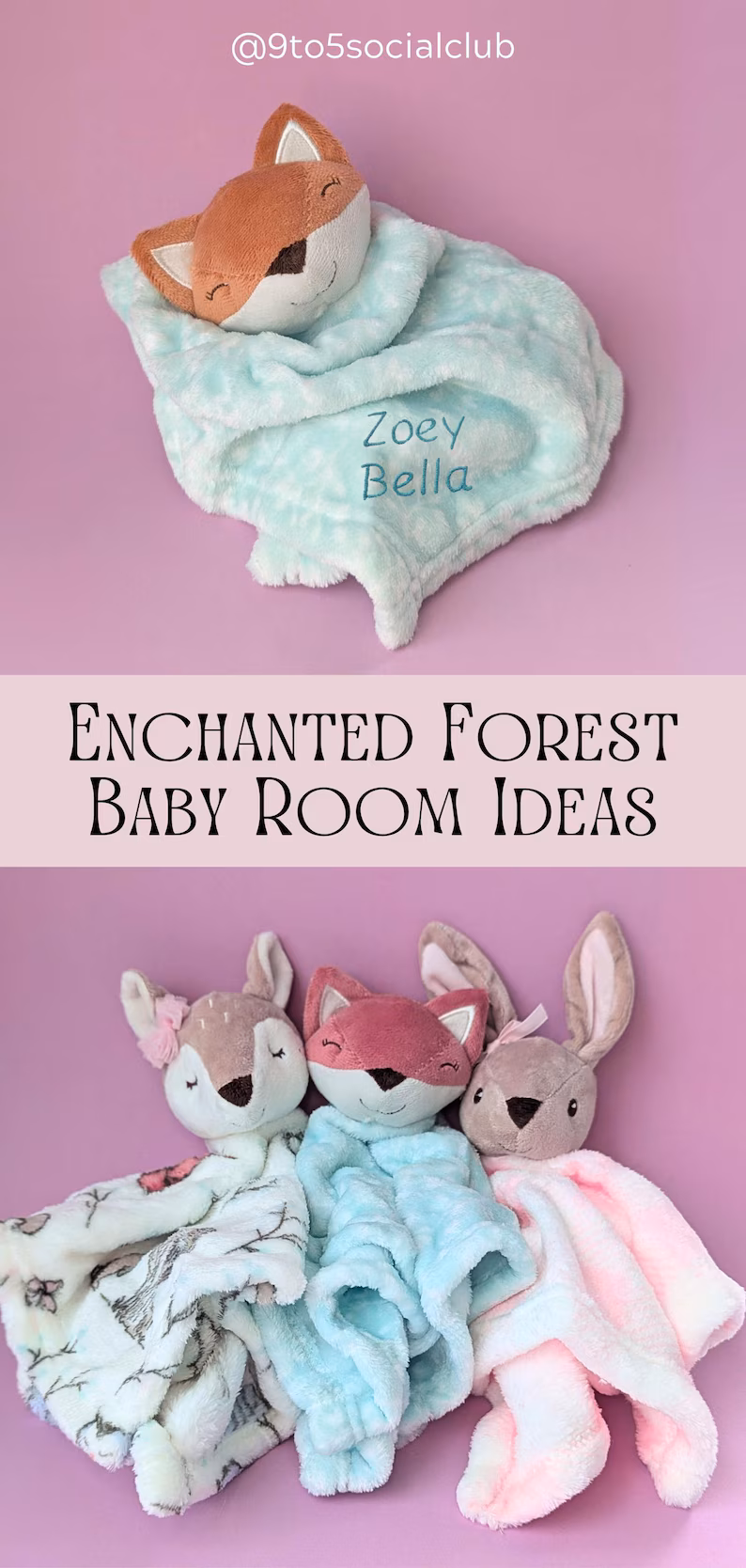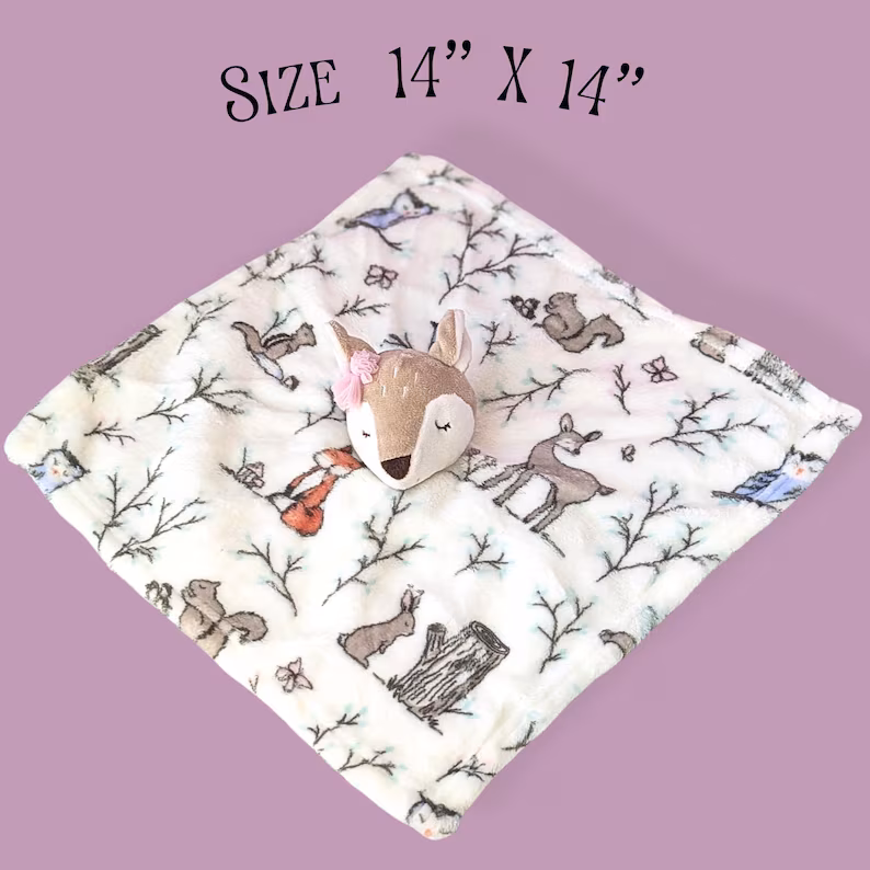 Welcome a little one with this enchanted forest animal baby girl gift that blends softness charm and comfort in one. This plush fox toy soft rabbit lovey and deer stuffed blanket are the perfect personalized baby shower gift for any new arrival. Designed as an heirloom piece this forest nursery deco brings gentle woodland animals into a cozy cuddle time favorite.